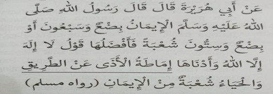 Hadis tersebut menjelaskan cabang-cabang iman. Perilaku berikut yang sesuai dengan salah satu cabang iman pada kalimat yang bergaris bawah tersebut adalah……………….. |