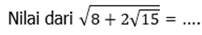 Seorang atlet berlari di lintasan yang panjangnya merupakan hasil penjumlahan dua jarak: yang pertama sepanjang Karena kedua jarak memiliki bentuk akar yang sejenis, pelatih dapat menjumlahkannya langsung sebagai bentuk akar. Total jarak yang ditempuh atlet adalah … |