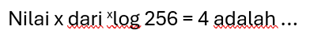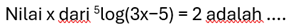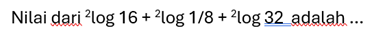 Jika log 2 = a dan log 3 = b, maka nilai dari log 72 adalah… |