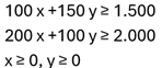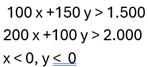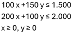 Suatu pabrik roti membuat 2 jenis roti. Jenis pertama membutuhkan 100 g tepung dan 200 g mentega. Roti jenis lain membutuhkan 150 g tepung dan 100 g mentega. Jika tersedia tepung 1,5 kg dan mentega 2 kg, sedangkan bahan-bahan lain cukup tersedia. Berdasarkan permasalahan di atas, bentuk model matematika yang tepat adalah …. |