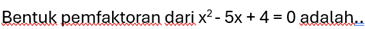 Persamaan kuadrat yang akar-akarnya 3 dan 4 adalah… |