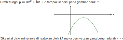 Nilai p yang memenuhi agar persamaan kuadrat memiliki akar kembar adalah… |